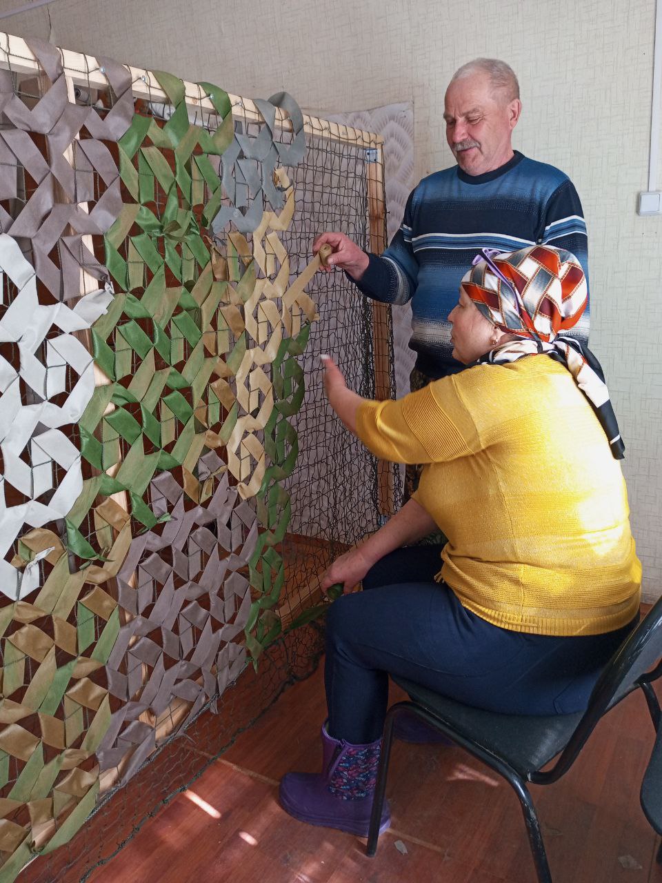 В с. Носовая социальные работники ГБУ "КЦСОН Краснобаковского муниципального округа" продолжают плести маскировочные сети для отправки в зону действия СВО